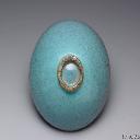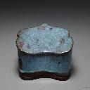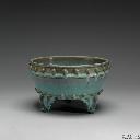 | 1 | 鈞窯 月白釉蓮花式盆托 | 钧窑,金(公元1115-1234年),无,颜色釉,高6.9公分 口徑22.5公分 盆托作六瓣蓮花形,圓口出沿,沿邊作細稜一道。淺壁,壁面依隨蓮花形,作拱起、凹進的變化;平底,下承三雲頭形足。胎厚釉濃,莊重典雅,稜線分明。通體罩施乳光釉,釉色月白泛青,釉彩不均,淺淡處與稜邊皆呈褐黃色。施釉至底足,外底塗褐色護胎釉,周緣有支燒痕十四枚,底印數目字「四」。 | 颜色釉 | 金(公元1115-1234年) | 台北故宫博物院 | ||