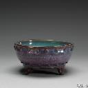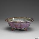 | 2 | 鈞窯 天藍葡萄釉蓮花式花盆 | 钧窑,金(公元1115-1234年),无,颜色釉,高16.4公分 口徑23.0公分 底徑11.8公分 作六瓣蓮花形,胎骨豐厚,侈口折沿,沿邊凸起一道細稜,深腹、上豐下斂,外壁依隨蓮花之形,作鼓起、凹進的變化。平底挖五孔,矮圈足,足圈對應折沿亦呈蓮花形。通體罩施濃釉,釉面不勻,口沿一道褐色窄邊,外壁葡萄紫釉局部出現天藍色的釉彩,內壁則藍、紫彩釉相間。施釉至足際,足內周壁與外底皆塗醬色護胎汁。足底緣與口下傷缺處皆露灰土色胎,底印數目字「七」,並有清宮所刻「養心殿隨安室用」的款記。 | 颜色釉 | 金(公元1115-1234年) | 台北故宫博物院 | ||
