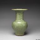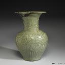 | 9 | 元 龍泉窯 拱花花卉鳳尾瓶 | 龙泉窑,元(公元1206-1368年),无,颜色釉,尺寸 高68.4公分 口徑30公分 底徑18公分 時代 元 十四世紀前期 西元14世紀前期 說明 鳳尾瓶,喇叭型大撇口,長頸、圓肩,長斂腹,深挖足圈,底後接。口外壁飾多道密集的弦紋,頸部為拱花浮雕轉枝花卉,腹部中段以凸弦紋上下為界,飾拱花纏枝牡丹,腹下半為長瓣蓮瓣兩層。剔拱深雕,圖案清晰凸顯。釉色厚而均勻,色綠偏黃。足圈內外寬邊無釉呈褐色,底部係從內底部另接餅狀物接成。口緣有大塊傷缺,並留有舊補痕。此件器形與雕刻,與英國戴維德收藏之泰定五年(1327)大瓶相似,比例上,頸較泰定作品為寬粗,腹部自肩至腹有較長而平順的橢弧度;而口下的弦紋、下腹的長蓮瓣,十分相似,花葉的形式、空間的疏密、雕刻手法皆類似。但本器釉色較灰濁。新安沈船與琉球首里城皆有相近風格作品出土。參考資料 【書名】 【作者/編者】 【出版者】 【出版日期】 《碧綠—明代龍泉窯青瓷》 蔡玫芬 臺北巿:國立故宮博物院 2009/05 | 颜色釉 | 元(公元1206-1368年) | 台北故宫博物院 | ||