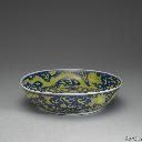 | 7 | 清 光緒 青花黃釉雲龍盤 | 景德镇窑(江西),清(公元1636-1911年),光绪,杂色釉,尺寸 高4.7公分 口徑25.2公分 底徑16.5公分 時代 清 德宗 西元1875-1908年 說明 盤,侈口,淺弧壁,圈足矮寬。器施藍釉為底色,盤內底及內外壁皆畫黃釉五爪雲龍紋,外壁底邊畫蓮瓣紋一圈,外底心書「大清光緒年製」二行青花楷書款。 | 杂色釉 | 清(公元1636-1911年) | 台北故宫博物院 | ||